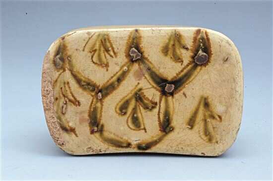 ■唐 长沙窑青釉褐绿彩草叶纹瓷枕