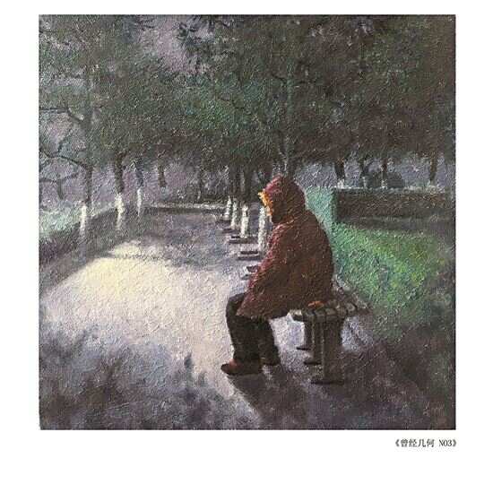 这系列作品《曾经·几何》是我对于人生的一个思考。“人生寄一世,奄忽若飙尘”,人的一生看似很长,实则犹如尘土,刹那间便被那疾风吹散,存在似有若无,快乐过也孤独过,满足过也失落过,跌跌宕宕平平淡淡。作品以最直接的布面油画为媒介,直抒胸臆,表现我眼中一些平常而感触的瞬间,也希望以绘画的形式体现我对生活的思量。三幅作品分别是童年时期、中年时期和老年时期的一个生活写照。当然生活需要思量,更需要行动。