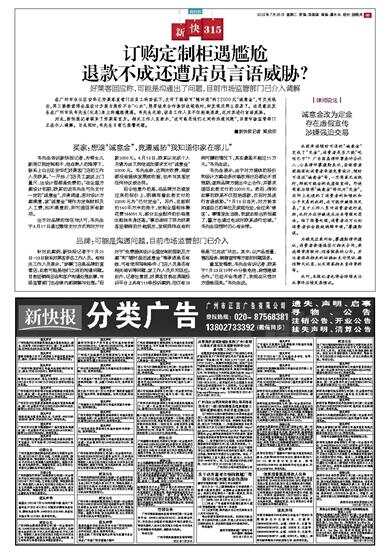 韦先生告诉新快报记者,为帮女儿新房订购定制柜子,他在熟人的推荐下,联系上白云区安华汇好莱客门店的工作人员欧某。“一开始,门店员工就说上门量尺、出设计图都是免费的。”在全屋方案设计初期,欧某劝说韦先生可先支付一定的“诚意金”,并承诺道,若对设计方案满意,该“诚意金”将作为定制材料及人工费,如不满意的,则可退回所有款项。