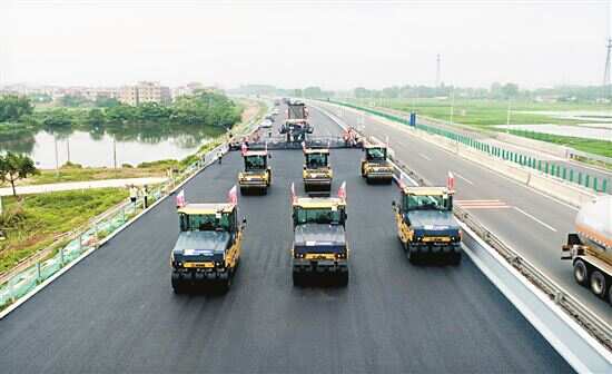 “我们在沥青中面层施工首次引进了无人驾驶碾压机群,能够按照施工规范要求自动精准作业,有效保障路面施工质量。”茂湛高速改扩建项目主任陈智江表示。