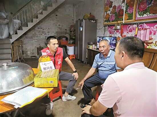 ■陈焕豪(左)“七一”期间入户走访,慰问村里的老党员。