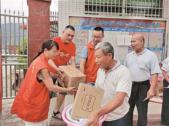■黄海鸿与文联村两委干部一同发放物资慰问村中的困难群众。