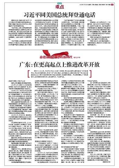 党的十八大以来,习近平总书记三次到广东考察、两次在全国两会期间参加广东代表团审议,作出系列重要指示,要求广东“以更大魄力、在更高起点上推进改革开放”“努力在全面建设社会主义现代化国家新征程中走在全国前列、创造新的辉煌”。牢记殷殷嘱托,广东砥砺前行,在实现新使命新任务上担当新作为、干出新气象。