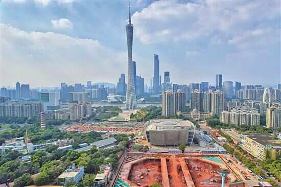 ■位于海珠区双塔路以南、赤岗北路以西的广州美术馆新馆,下方为还在进行基建的广州科学馆。