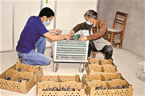 ■在基地务工的村民在管理鹧鸪幼崽。