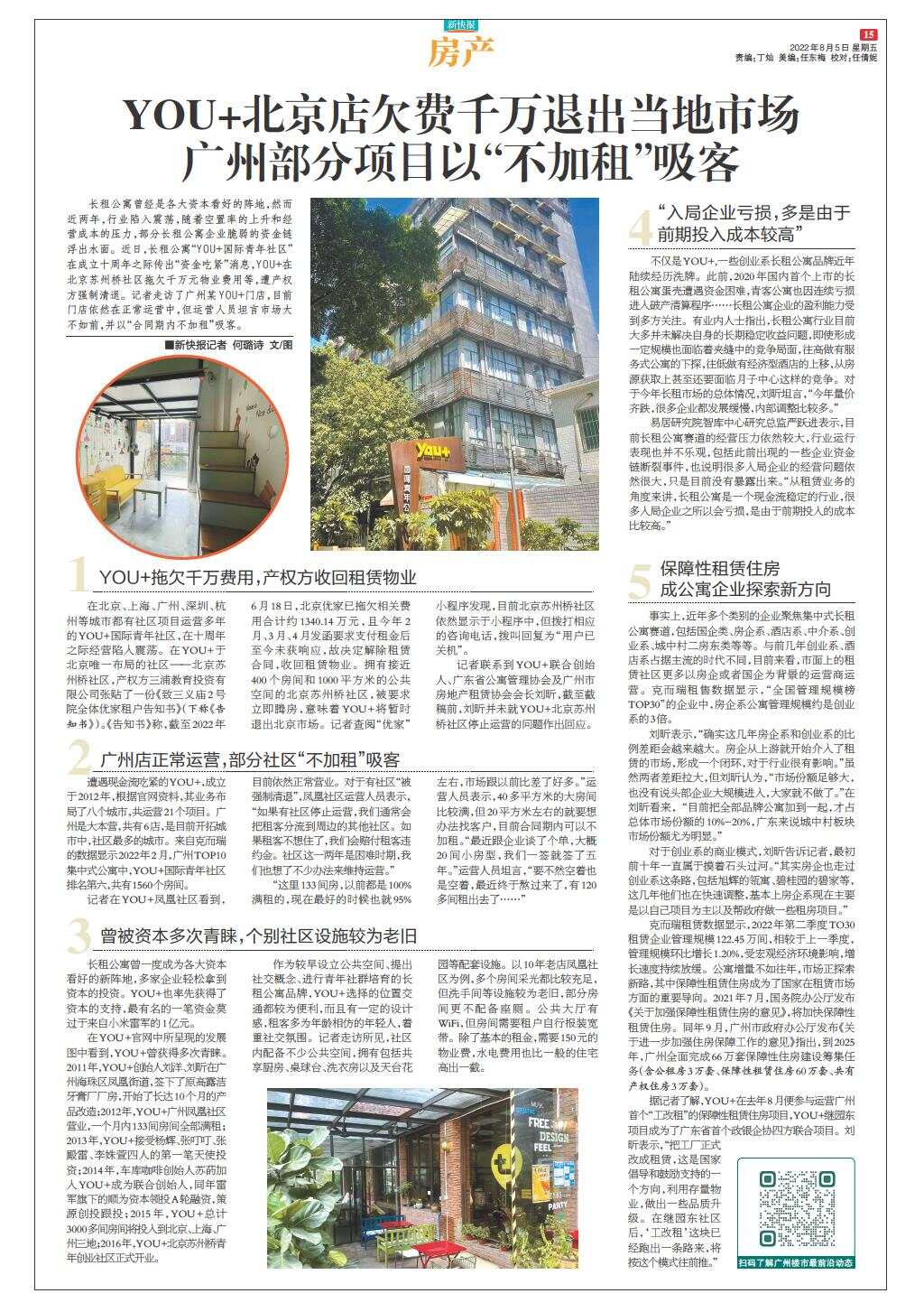 YOU+北京店欠费千万退出当地市场 广州部分项目以“不加租”吸客