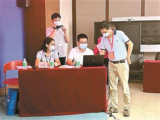 ■抽奖仪式现场,广州市福彩中心工作人员正有条不紊地进行着各项抽奖环节。