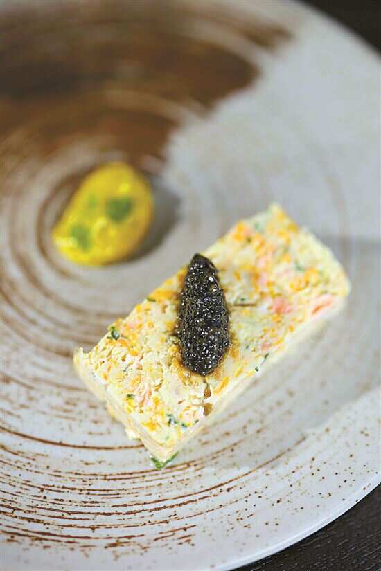 例如这道腌制鲷鱼,是Diego结合自己多年烹饪经验而研发出来的一款融合口味的亚洲料理菜式,“专门为宝格丽酒店在北京、上海和迪拜的餐厅设计的,耗时一年时间才得到现在这样完美的口感呈现。”他选用4斤左右的鲷鱼,先用水和盐腌制24小时,然后再加入米醋控制40℃低温慢煮25分钟,切片配鱼子酱、酸奶油等上桌。