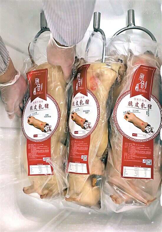 ■乳猪制成预制菜后,就能方便地送到各大酒店、食堂和家庭餐桌。