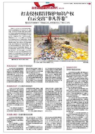 化妆品是被列入白云区“6+6现代产业集群”重点发展的支柱型产业,通过三年打假,以往困扰白云区化妆品企业的假冒问题得到明显扭转,涉假案件同比下降27.78%,举报数同比大幅下降50.91%,不少企业对扎根白云提振了信心;白云曾是广受弊病的“A货集散地”,而如今多个国际知名品牌权利人反映该区制售假窝点明显减少,白云区营商环境不断优化。