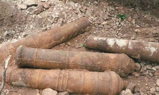 新快报讯 9月6日上午,正在修缮的蛇头湾炮台旧址在进行巡查通道挖掘作业中,发现了四门于道光年间佛山铸造的大炮,距今约180年。每门大炮重六千司马斤(约3.6吨)。据初步考证,这四门大炮很可能是在第二次鸦片战争中,被英军破坏并掩埋。