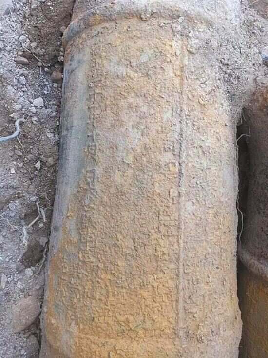 施工现场,初步挖掘出来的4门铁炮堆放在一起,炮身整体完整,但炮耳有明显损坏痕迹,炮口及点火嘴也被人为封堵。清理之后炮身铭文显示,它们的铸造时间分别是道光二十年(1840年)、道光二十一年(1841年)与道光二十四年(1844年),还有一门铁炮铸造时间有待进一步认定。
