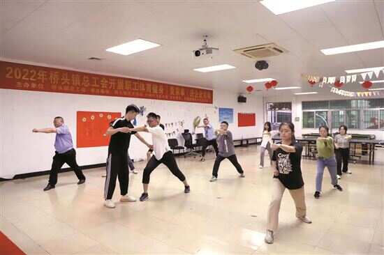 新快报讯 记者杨英杰报道 为落实全民健身国家战略,打造健康文明、积极向上的职工文化,激发桥头企业广大职工争做健康中国建设主力军,近日,桥头镇总工会联合镇武术协会在东莞赣锋电子有限公司开展了为期20天的职工健身(莫家拳)培训活动。