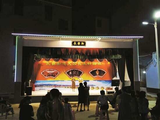 ■大园村搭建戏台,让村里的潮剧发烧友“过把瘾”,丰富了群众的业余生活。