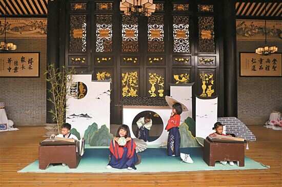 小朋友们在学习弹古筝。