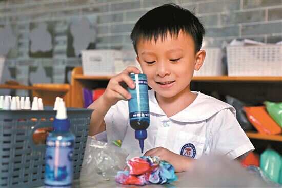 小朋友在学习扎染。