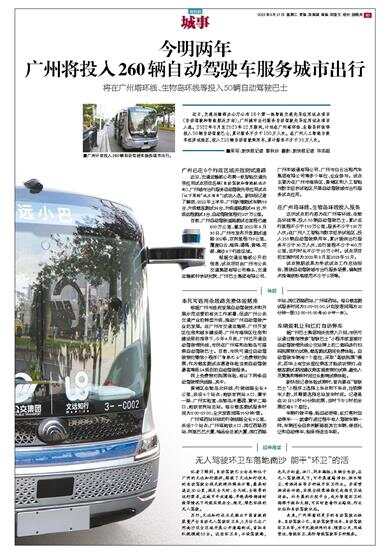 将在广州塔环线、生物岛环线等投入50辆自动驾驶巴士