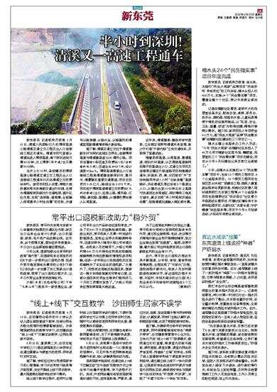新快报讯 记者杨英杰报道 9月21日,清溪人民期盼已久的博深高速公路清溪互通立交工程及出入口连接线工程正式通车。清溪市民可直接从清溪站进入博深高速,南下深圳龙岗只需30分钟,北上博罗(待开通)也只需要45分钟。