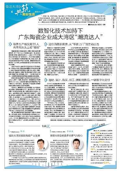 广东陶瓷产业在全国乃至全世界都占据相当重要的地位。随着粤港澳大湾区发展,企业更要借助大湾区雄厚的科创科研实力赋能传统技术、实现产品创新、拓展应用领域等,为消费者带来更多美好生活感受。