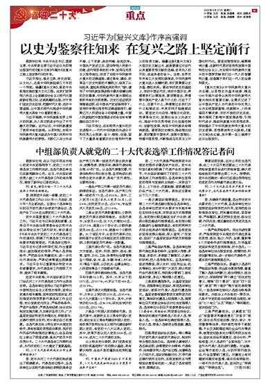 据新华社电 在以习近平同志为核心的党中央坚强领导下,党的二十大代表选举工作顺利完成,当选代表名单也已在新闻媒体公布。近日,中央组织部负责人就二十大代表选举工作的有关情况,接受了新华社记者的采访。