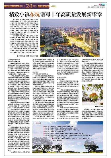 幢幢高楼鳞次栉比,世纪广场人声鼎沸,东皇步行街灯火璀璨、东坑农业园绿树成荫、长安塘荔枝园内笑声不断……经历十年变迁的东坑,城市品质内涵不断迭代升级,绿色发展深度融入城市发展肌理, “推窗见绿、蓝绿交织、出门进园”的梦想一步步得以实现。