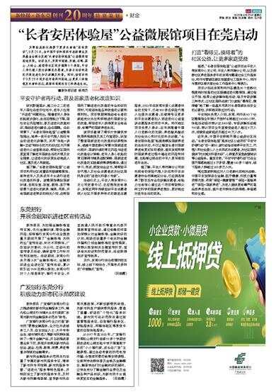 为帮助老龄化趋势下更多长者能“居有所安”,9月26日,由中国平安和深圳市老龄事业发展基金会联合发起“长者安居体验屋”公益微展馆落地东莞。活动当天,东莞市南城、东城、石碣、茶山、大岭山、道滘等社区同步揭牌6个展馆,平安人寿代理人担任讲解员志愿者,为参与活动的居民开展适老化知识讲解及科普。同时,该项目将于9月28日同步在河南郑州落地,让更多人体验银发长者的状态,提前布局规划自己的养老生活。