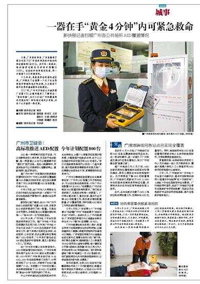新快报记者了解到,自2017年广州开始在公共场所推广设置AED以来,目前多处公共场所都进行了统一配置。只是在全市范围内,目前距离AED配置的国际标准——“每400米一台”还相差甚远。