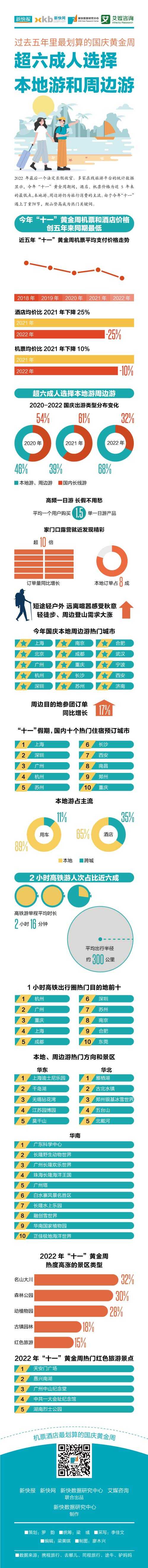 2022年最后一个法定长假收官。多家在线旅游平台的统计数据显示,今年“十一”黄金周期间,酒店、机票价格为近5年来的最低点,本地游、周边游仍为旅行消费的主流。在各地倡导“就地过节”的背景下,超过六成订单选择本地游和周边游。受此带动,宅酒店、住民宿、露营游成了人们热衷选择的度假方式。另外,由于今年“十一”黄金周遇上了重阳节,爬山登高成为热门关键词。