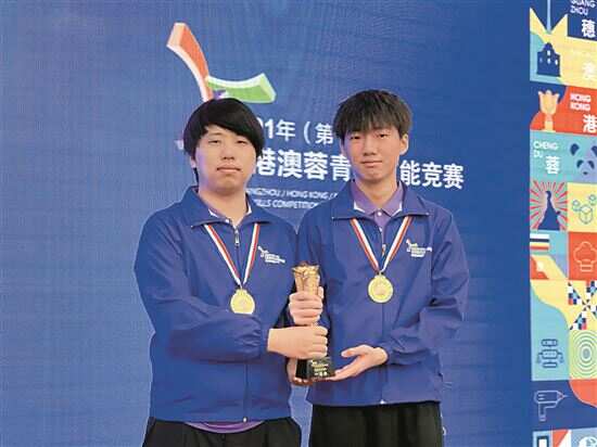 ▲梁熙雄(右)荣获第十一届穗港澳蓉青年技能竞赛网络安全项目一等奖。