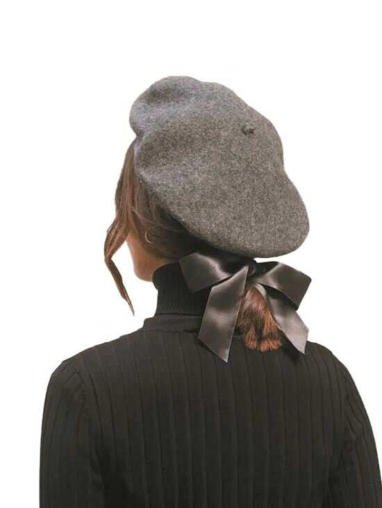 ▶后戴的贝雷帽配低马尾或盘发非常显气质,优雅中带一丝慵懒。