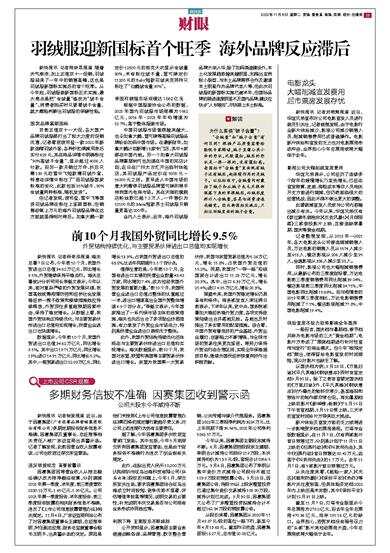 新快报讯 记者陆妍思报道 随着天气渐凉,加上正值双十一促销,羽绒服迎来了一年中的销售高峰,这也是羽绒服新国标实施后的首个旺季。从今年起,羽绒服装新国标正式实施,最大亮点是把“含绒量”修改为“绒子含量”,消费者购买时只要看绒子含量,就大概能判断出羽绒服的保暖性能。