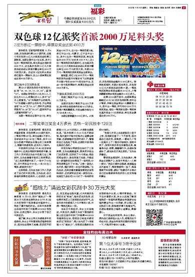 新快报讯 记者陆妍思报道 11月6日晚,双色球进行第22127期开奖,这是今年双色球12亿元大派奖活动的第三期派奖,当期全国中出5注头奖,其中2注为一等奖特别奖,单注奖金达到封顶2000万元,这也是双色球12亿元大派奖活动启动以来首次爆出单注2000万元封顶大奖。后证实2注加料头奖由浙江温州一票独中,加上小奖单票总奖金达到4003万多元。