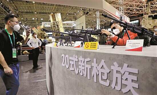 中国航展除了看各式各样的飞机,陆战装备也是军迷的心头好。新快报记者巡馆发现,展出“20式新枪族”的8号馆热闹非常,专业日已经需要排队半小时以上才能进入轻武器展区摸一摸它们。
