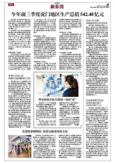 吴庆球说,今年,虎门以推动高质量发展为主题,统筹推进疫情防控和经济社会发展。今年前三季度,全镇实现地区生产总值542.48亿元,同比增长2.9%。今年1-9月,全镇社会消费品零售总额260.42亿元,增长1.6%;1-8月进出口总额540.73亿元,增长2.9%;截至10月底,全镇市场主体13万户,增长11.7%,其中企业5.4万户,增长10.6%。吴庆球从5个方面介绍了虎门经济社会发展概况。
