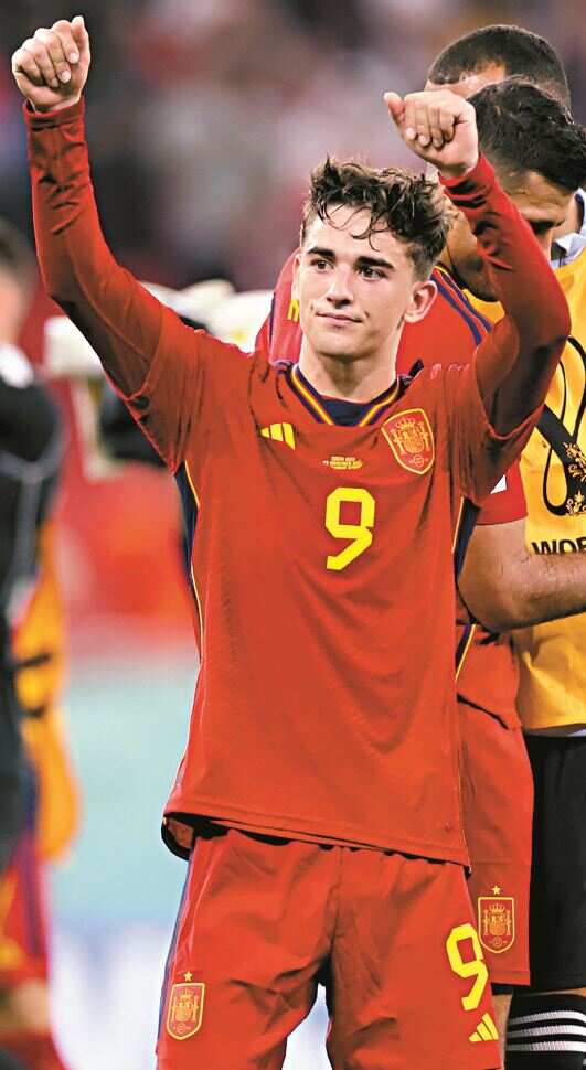 与加维同时首发的还有19岁的佩德里,这是西班牙队史首次在世界杯单场比赛中有两名20岁以下球员首发。当年哈维、伊涅斯塔这一黄金组合的接力棒,交到了加维和佩德里的手中。
