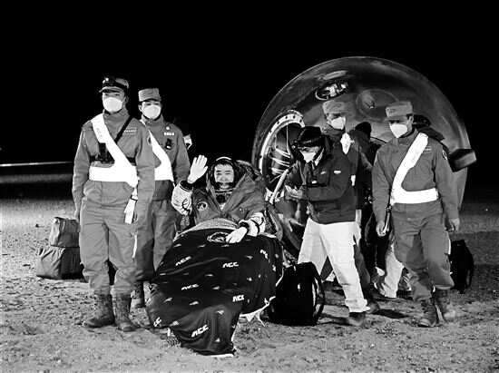 ■12月4日,神舟十四号载人飞船返回舱在东风着陆场成功着陆。这是航天员陈冬安全顺利出舱。新华社发