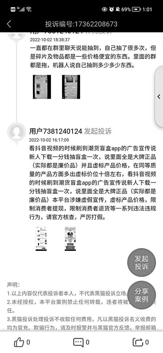 ■黑猫投诉平台上有不少关于盲盒APP的投诉。