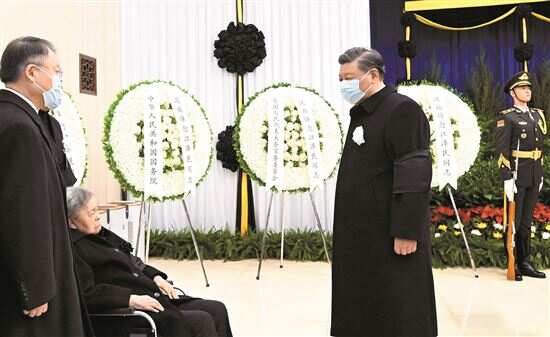 ■12月5日,江泽民同志的遗体在北京火化。这是习近平向江泽民同志的夫人王冶坪和亲属表示深切慰问。新华社发