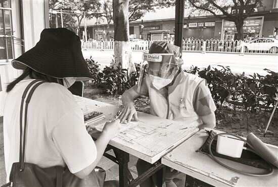 ■一名志愿者在为群众服务。