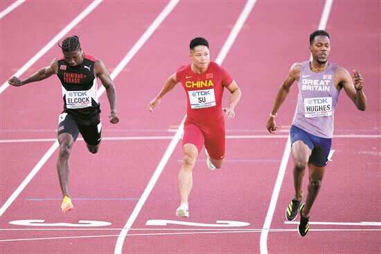 东京奥运会男子百米决赛,完赛的6人均跑进了10秒,其中排在第6名的苏炳添成绩为9秒98。今年的尤金田径世锦赛百米决赛,只有前4名选手跑进了10秒。