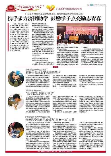 2017年以来,广东省乡村发展基金会持续开展“关爱工程”,资助考上全日制普通本、专科院校的困难学生完成大学学业。
