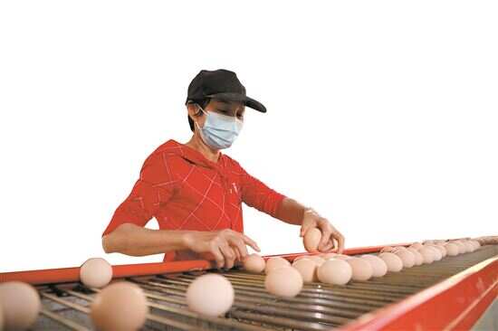 位于军营村的清新区弘益畜牧发展有限公司分拣车间内,十多位附近村民正在手眼并用地快速捡装鸡蛋。“我们还包吃住,老板人很好。”附近村民阿梅熟练分拣着传输带上的鸡蛋,快活地回答道。她说,蛋鸡厂基本实现机器自动化,他们主要负责分拣包装和打扫卫生,“在家门口就能挣到三四千元,还有社保、医保。”