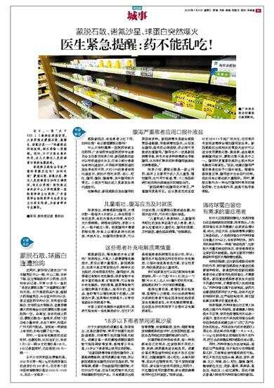 针对元旦假期期间静注人免疫球蛋白在各地被疯抢的现象,陈孝指出,人免疫球蛋白系采用健康人血浆或血清分离、纯化,并经灭活、去除病毒等步骤加工制备而成。人免疫球蛋白中丙种球蛋白含量占90%以上,含有多种抗体。其作用机制有两种:一种是“被动免疫”,注射较大剂量的被动抗体后,使受者得到完全保护而不被感染。临床主要用于预防麻疹和甲型肝炎等病毒性感染。