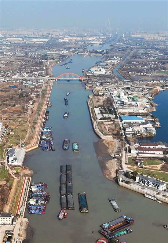 元旦假期后,各企业陆续开工,在京杭大运河江苏扬州段,货运船只来往穿梭,水上运输呈现一派繁忙景象。新华社发