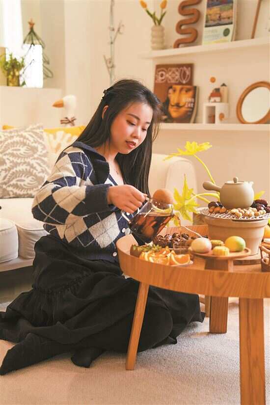 “当时居住的老房子位置临河,房屋层层高,冬天的时候很自然就想起在阳台生火,一边围炉煮茶,一边往炉子放红薯、板栗、花生。那时,我还是朋友圈里围炉煮茶的‘先行者’。”晓琳回忆笑道。冬日炉子火苗温暖,让人不由自主靠近,映照得整个人神采奕奕。那些平时看起来朴实无华的小食,在炉火上走一遭后,似乎增添了几分美味,直教人眼馋、嘴馋。