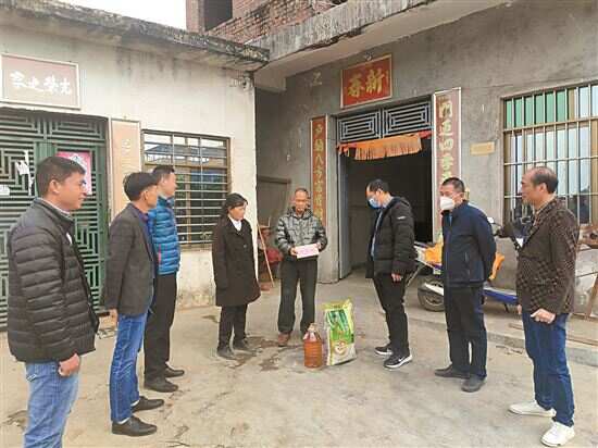 在监测户谢营钧家里,镇党委书记黄凤明与工作队跟谢营钧两夫妻面对面亲切交谈沟通,详细询问他们近期的身体状况、经济收入、生活开支和孩子读书等情况,耐心听取他们下一步的生产生活打算,并详细记录他们在生活中遇到的困难和问题,为他们今后的生产生活想办法、出主意,并向他们送上大米、花生油和慰问金。“要坚定信心,相信在党的好政策支持下,凭着你们自身的努力,日子会越来越好。”黄凤明笑着说,并一再叮嘱他们有困难要及时反映。