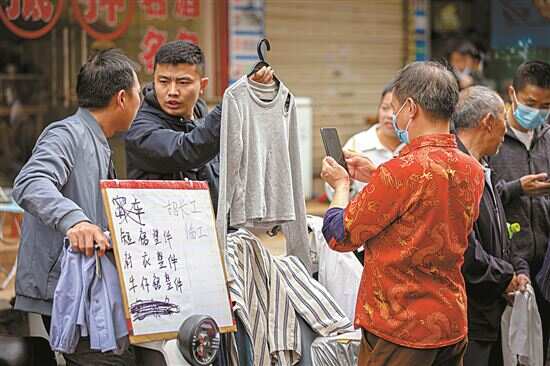 焉老板与家人一起在城中村里经营一家制衣厂。去年12月他们回到老家,两个月后又重返广州,开启新一年的工作。每天上午8时到11时,焉老板都会在楼下的中心商业街招工。“今年招工比往年要难,我招了两天,除了昨天招到了两个人,今天一个都没招到,没办法,招不到只能我们自己做。”在大塘,像他们这样的“家庭作坊”还有很多。“除了去年疫情期间积压的订单以外,开年以后还接到了不少新的订单,但元宵节刚过,很多工人还没有返回来,再加上今年工人的工资预期普遍提高,所以今年招工并不像往年那么容易。”焉老板说。