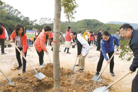 150多人种下150多棵高山榕等树种,为南粤大地增绿添彩