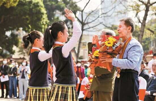 幸福生活来之不易。革命先辈用青春、热血和生命,浇灌了英雄花、浇筑了英雄城,换来了今天的和平与美好。杨江树、周宏中、张华等三位年近九旬的抗美援朝老战士来到现场,讲述了70多年前雄赳赳、气昂昂跨过鸭绿江的艰苦卓绝战斗历程,寄语新时代青少年弘扬伟大抗美援朝精神,让红色基因在广州传承发扬光大,建设更强大的祖国。少先队员向老战士献上鲜花,致以崇高敬意。