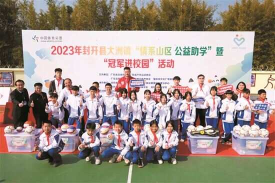 新快报讯 记者陆妍思 通讯员肇庆体彩报道 2月26日,由广东省社训中心、广东省户外运动协会、肇庆市文广旅体局主办,肇庆市体彩中心、封开县大洲镇人民政府等单位承办的2023年封开县大洲镇“情系山区 公益助学”暨“冠军进校园”活动在大洲学校举行。